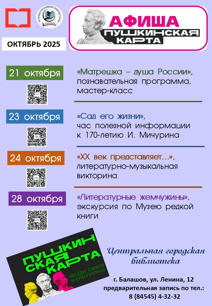 Центральная городская библиотека приглашает молодежную аудиторию на мероприятия по «Пушкинской карте».
