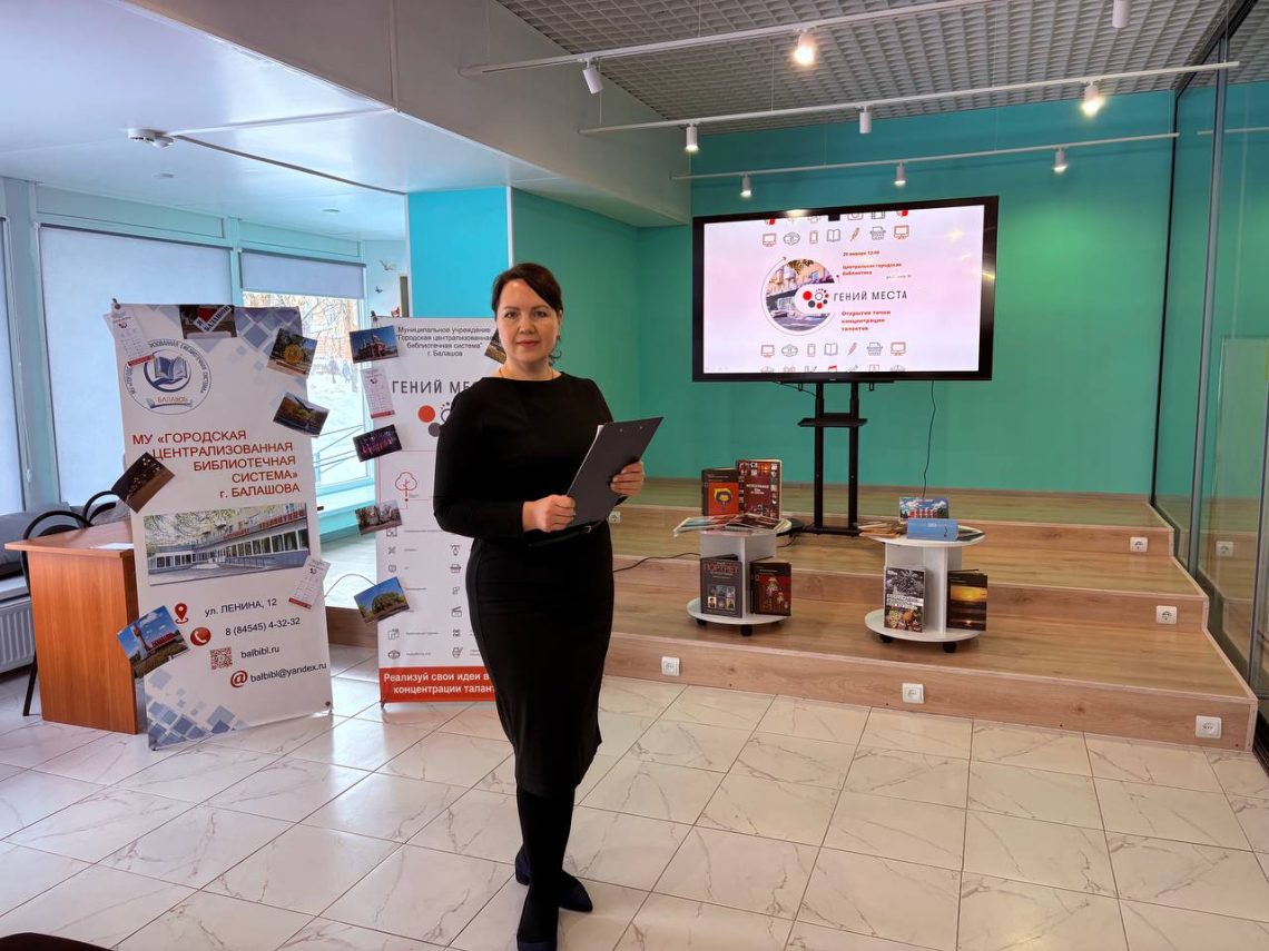 29 января 2026 года состоялось торжественное открытие новой точки концентрации талантов «Гений места» в модельной библиотеке города Балашова.Мероприятие получило официальную поддержку, включая присутствие и выступление председателя собрания депутатов Балашовского муниципального района Нины Николаевны Шехматовой, заместителя директора по связям с общественностью МУ «Балашовский краеведческий музей» Юлии Халяпиной.