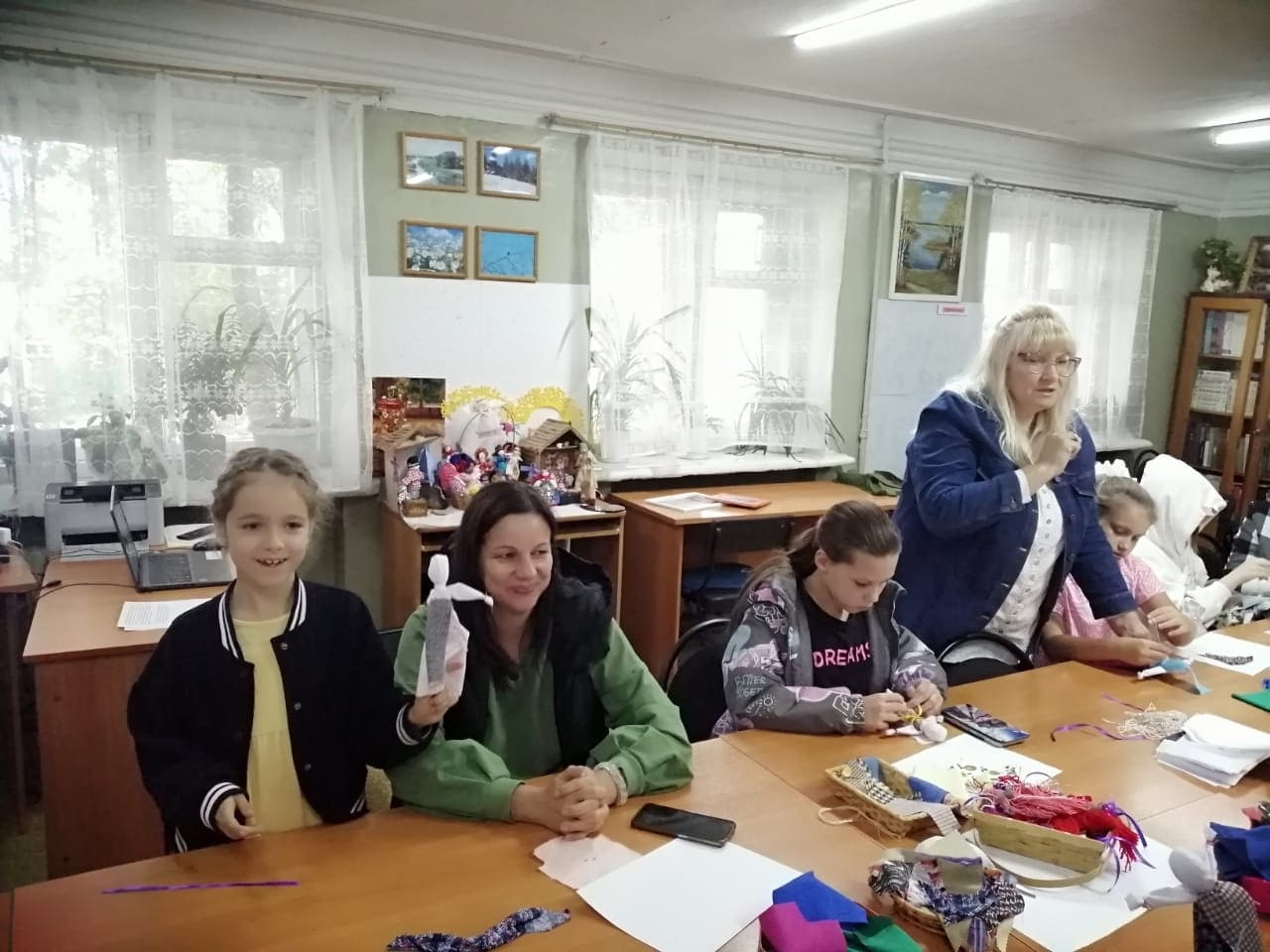Присутствующие вместе с руководителем кружка Михалевой Ириной Васильевной сделали обрядовую куклу «Ханцегуаше». Ребята отлично справились с нелёгким процессом изготовления кукол, а потом забрали их домой.