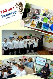 Ребята познакомились с интересными фактами биографии из жизни и творчества поэта, были продемонстрированы семейные фотографии Есенина. Память о Сергее Есенине – это его стихи, поэтому в течение всего мероприятия звучали лирические строки его бессмертных стихотворений о природе, дружбе, любви, матери, России. Теплые лирические стихотворения «Береза», «Отговорила роща, золотая», «Не жалею, не зову не плачу», «Гой ты, Русь, моя родная…», «Письмо матери» и другие — все эти прекрасные стихи нашли отклик в сердцах юных слушателей.