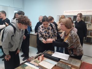 Школьники узнали о том, какие книги являются редкими, об особенностях собрания книжных раритетов, находящихся в фонде музея. Ведущая Лещева С.В. рассказала о знаменитых российских издателях второй половины XIX — начала XX веков, были продемонстрированы наиболее интересные издания, выходившие в то время.