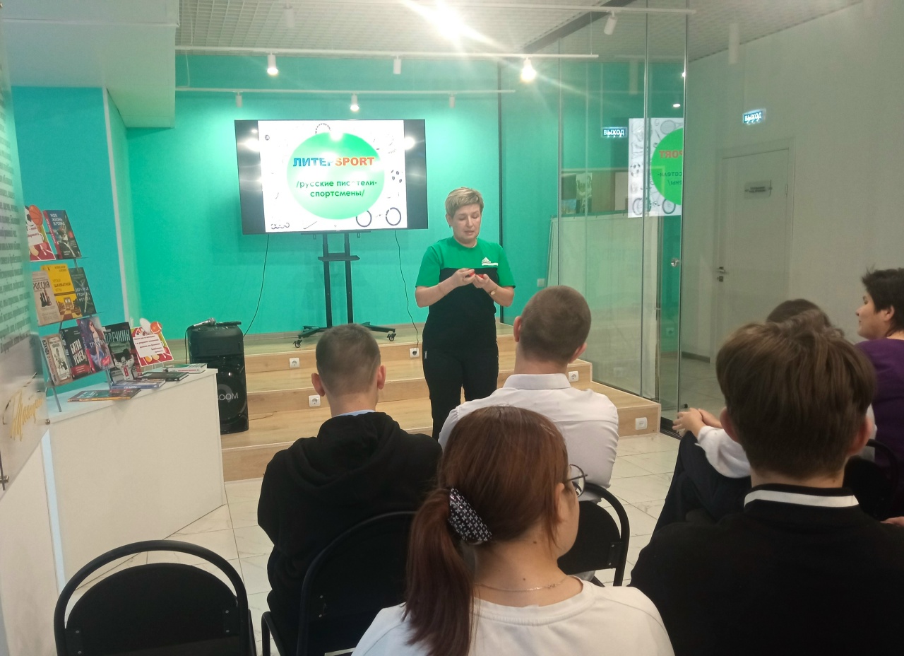 Вместе с учащимися МАОУ СОШ №16 сотрудники убедились, что спорт и занятие литературой- вещи вполне сочетаемые. Библиотекари И.Ю. Ковалева и Л.А. Чернецова рассказали ребятам, что спортивные увлечения А.С. Пушкина, Л.Н. Толстого, А.И. Куприна И.С. Тургенева, М. Горького и А.А. Ахматовой успешно сочетались с литературным трудом.