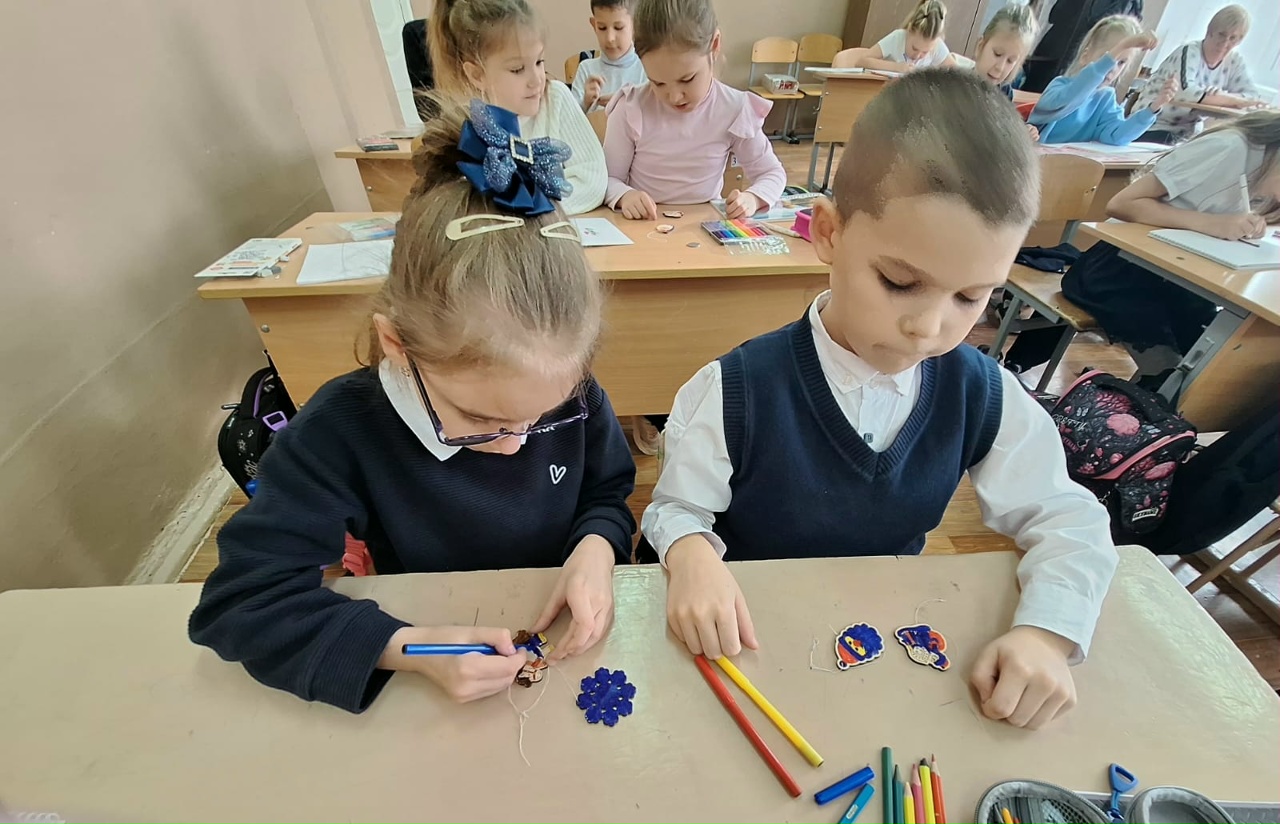 На мастер-классе ведущая предложила ребятам украсить новогодние игрушки собственными руками.