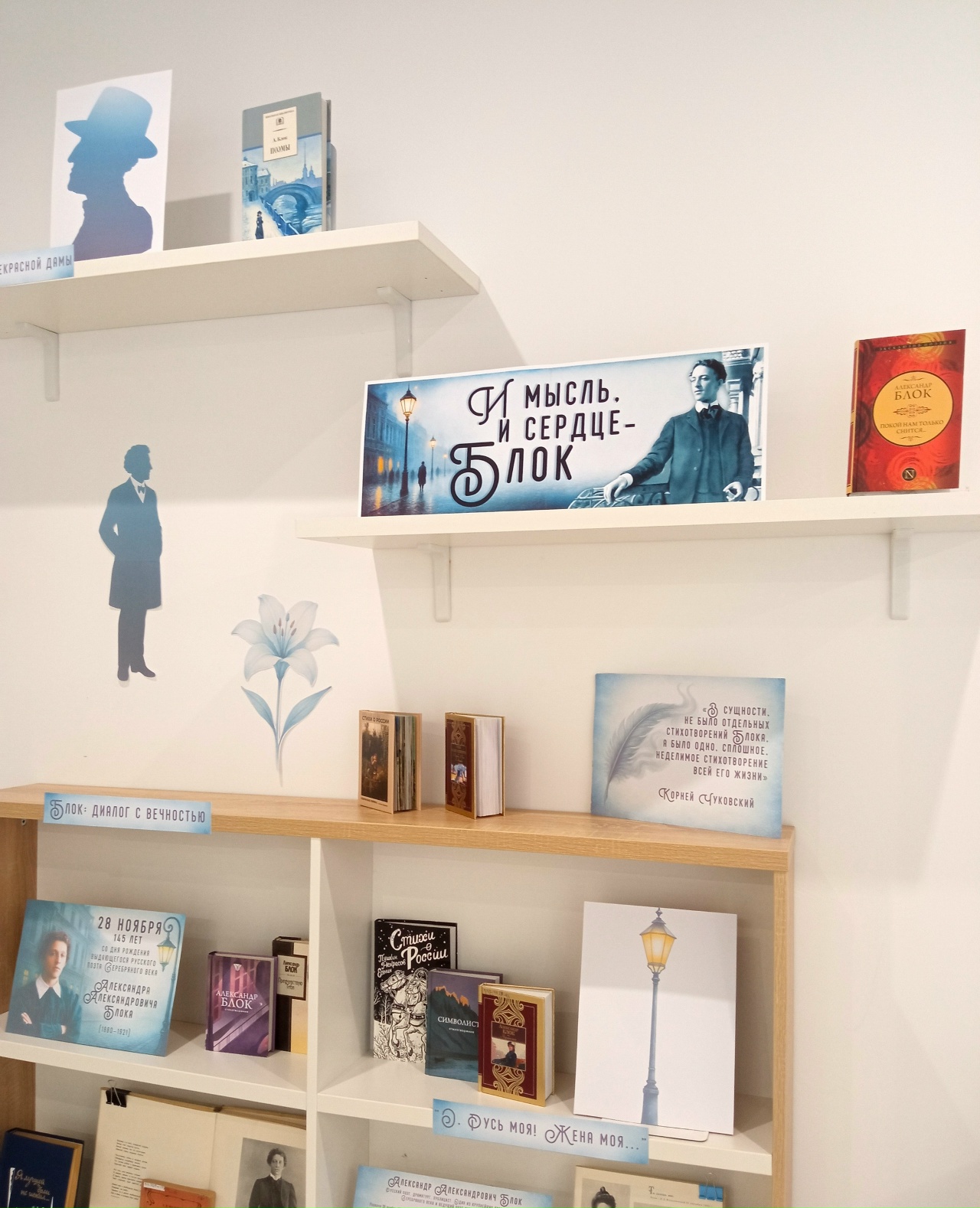 В преддверии 145-летия со дня рождения Александра Блока, поэта Серебряного века, чье имя навсегда вписано в историю русской литературы, в модельной центральной библиотеке оформлена книжная выставка «И мысль, и сердце — Блок»