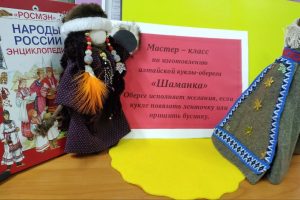 Также был проведен мастер-класс, на котором руководитель кружка Михалева Ирина Васильевна вместе с участниками занятия изготовили алтайскую обрядовую куклу «Шаманку». Ребята проявили фантазию и хороший вкус при украшении национального костюма.