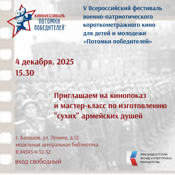 4 декабря приглашаем в модельную библиотекуна кинопоказ Фестиваля «Потомки Победителей»