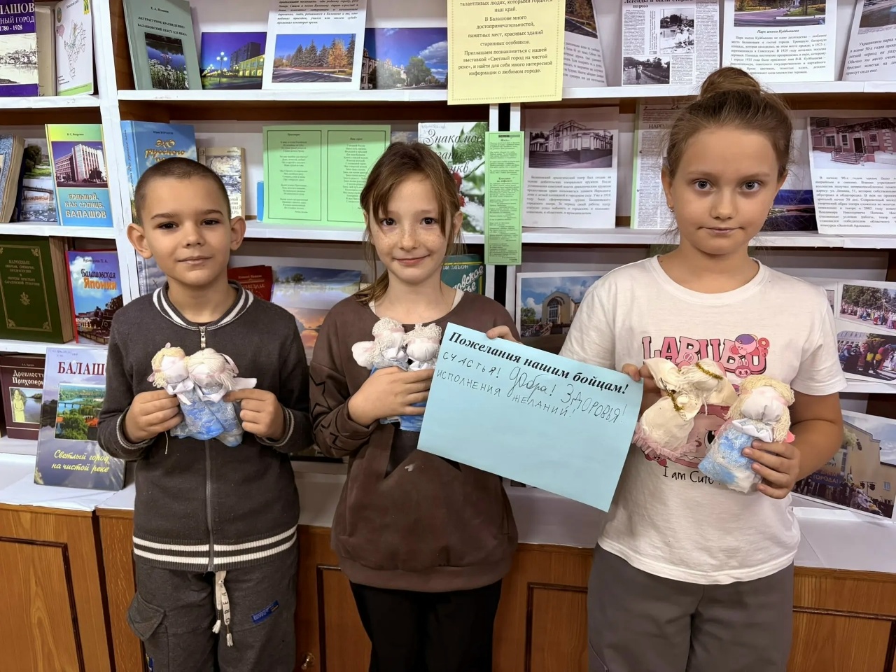 Мероприятие, посвященное 80-летию Великой Победы и Году Защитника Отечества, прошло в преддверии Дня волонтеров и Дня Героев Отечества, а также в рамках регистрации Национального рекорда России. Юные читатели центральной детской библиотеки и «серебряные» волонтеры клуба «Озарение» изготовили подарки для бойцов СВО, ангелы-Хранители, и написали добрые пожелания.