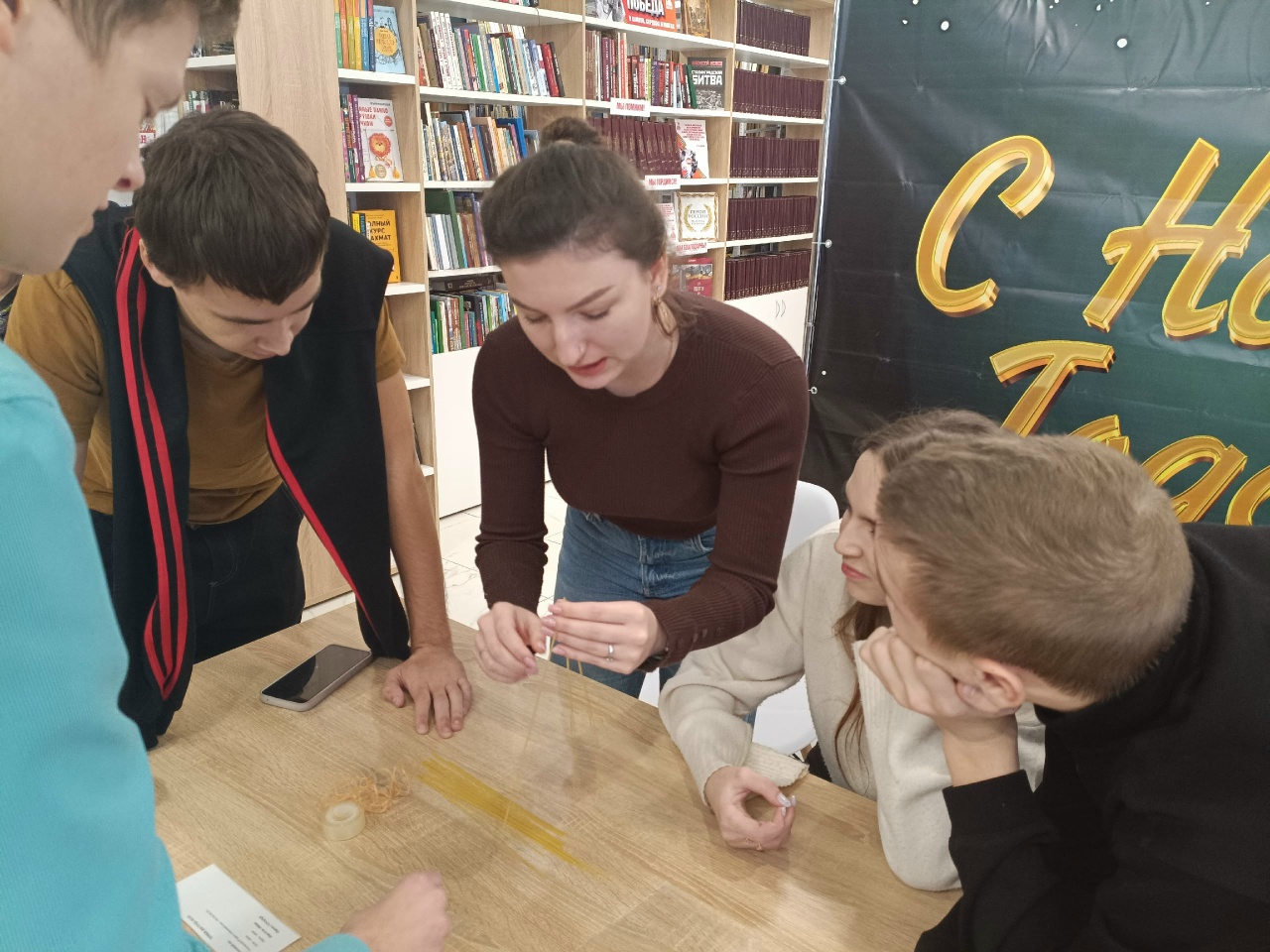 Задача проста: команды должны построить самую высокую башню из спагетти, скотча, веревочки и одной зефиринки. Зефир должен быть на верхушке!
