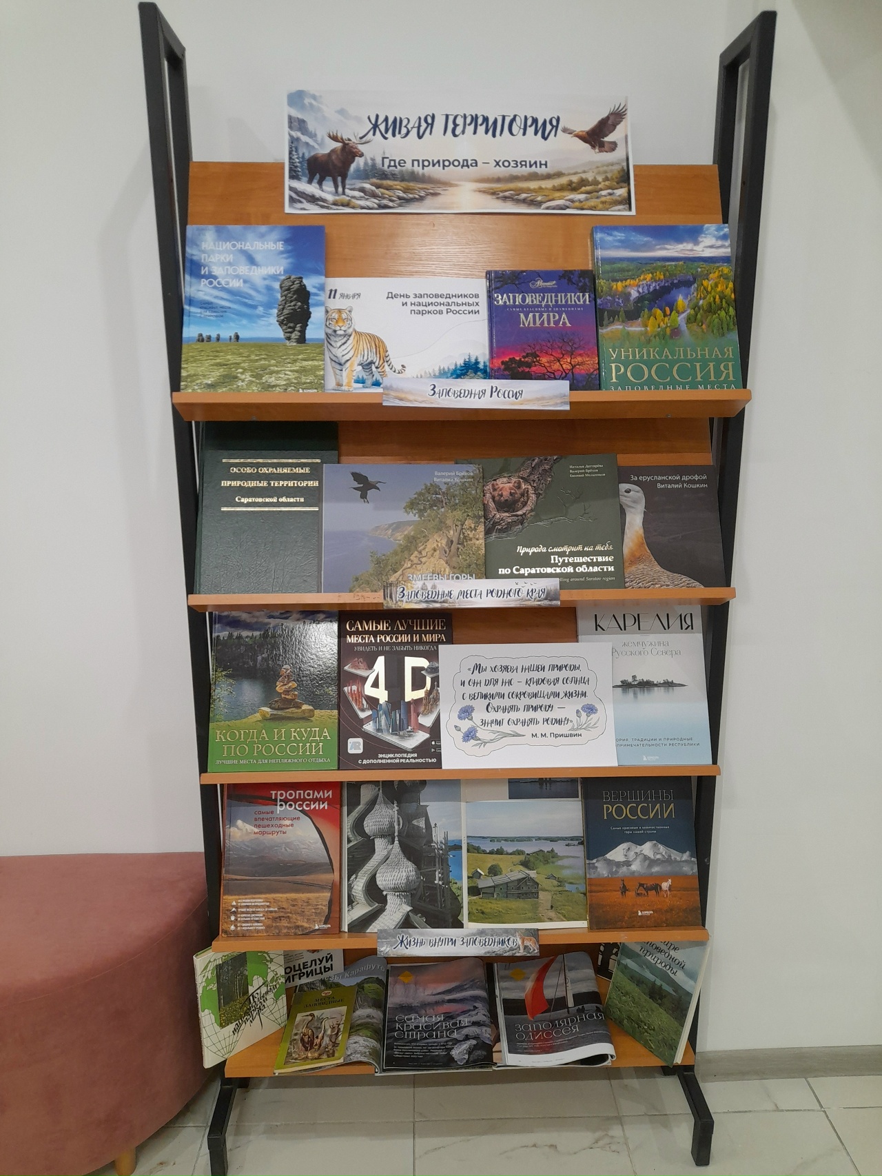 К этому дню в модельной центральной библиотеке была оформлена выставка-путешествие «Живая территория. Где природа — хозяин».