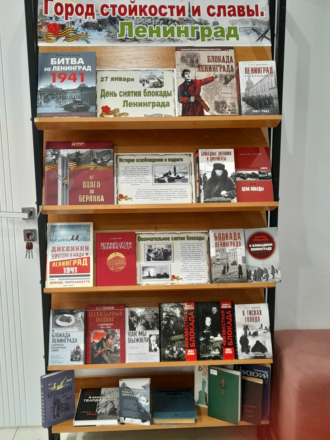 Одной из самых трагических страниц Великой Отечественной войны — блокаде Ленинграда посвящена выставка-память «Город стойкости и славы. Ленинград», оформленная в модельной центральной библиотеке.