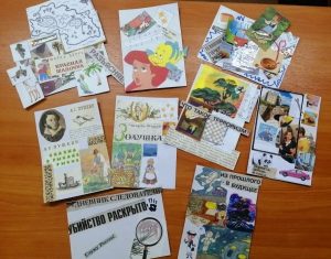 С азартом участвовали в викторинах: вспоминали сюжеты детских сказок, отвечали на шуточные вопросы по литературе, предлагали продолжение известных пословиц, складывали пазлы и по картинке называли произведение и автора.
