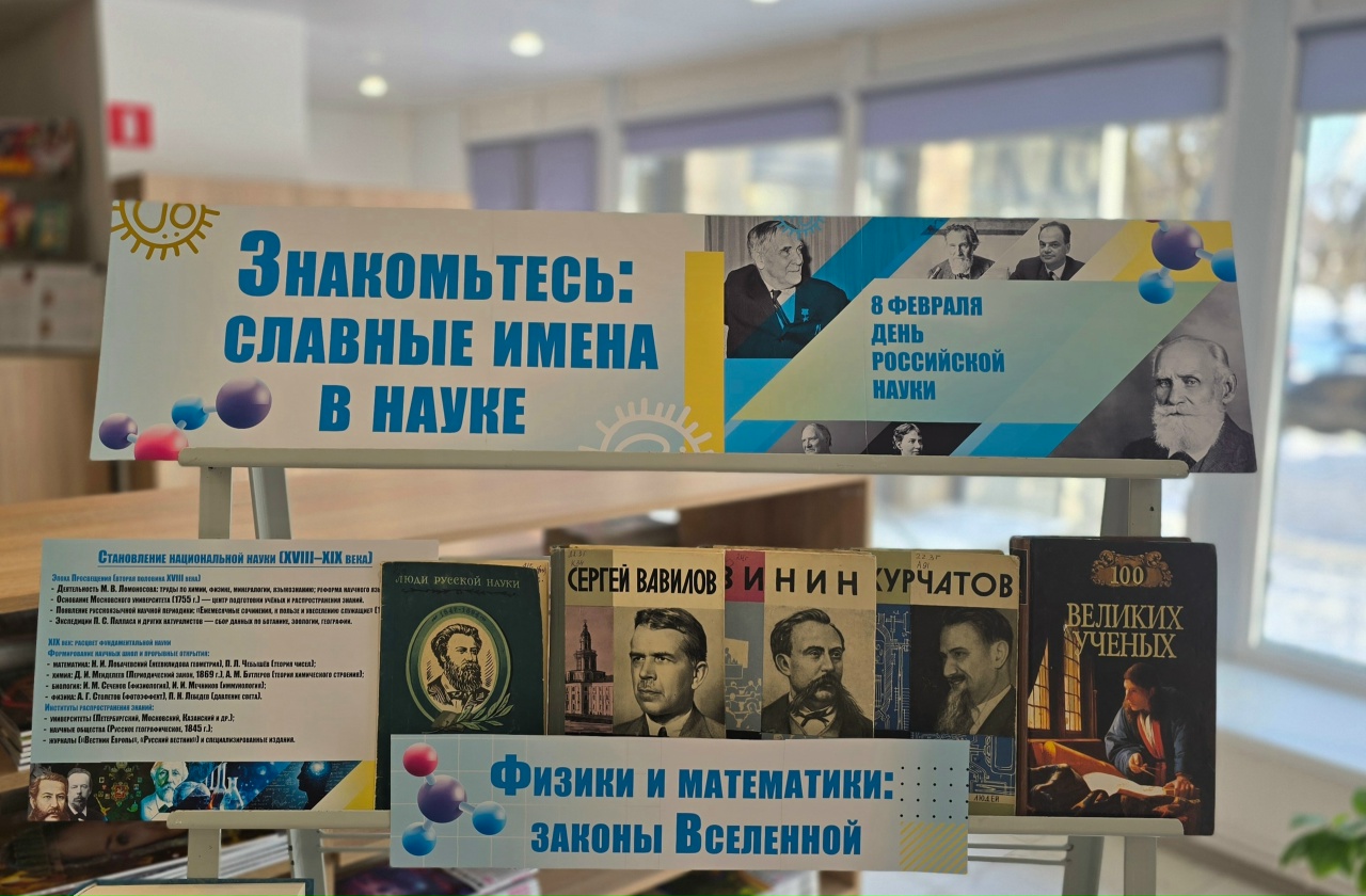 Книжная выставка ко Дню российской науки /Знакомьтесь: славные имена в науке/