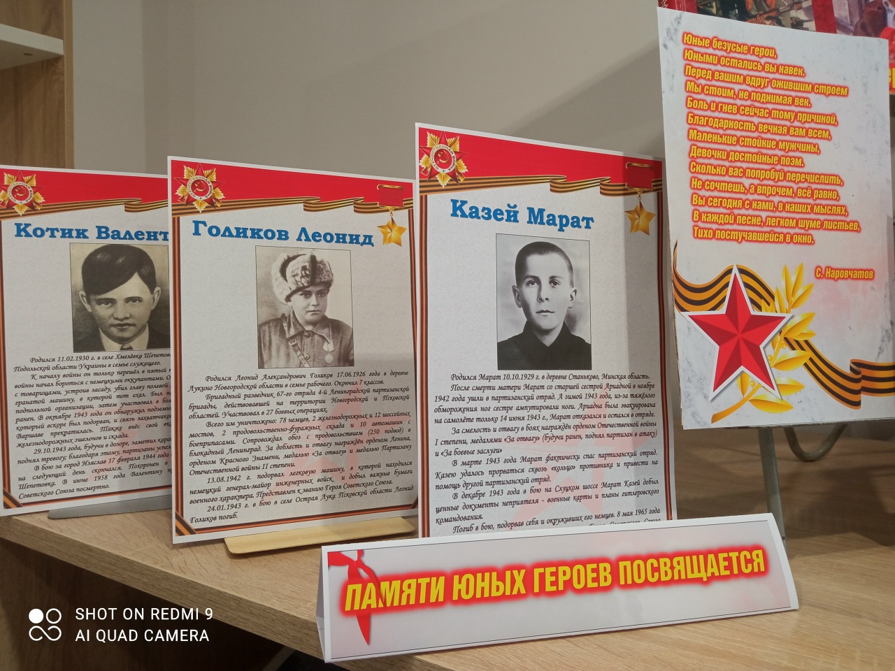 В честь этой памятной даты модельная центральная библиотека организовала книжную выставку «Юные герои войны». Здесь посетители могут познакомиться с подвигами мальчишек и девчонок, которые ходили в разведку, подрывали вражеские эшелоны, распространяли листовки, спасали раненых бойцов. Их подвиги – это уроки патриотизма для всех нас.