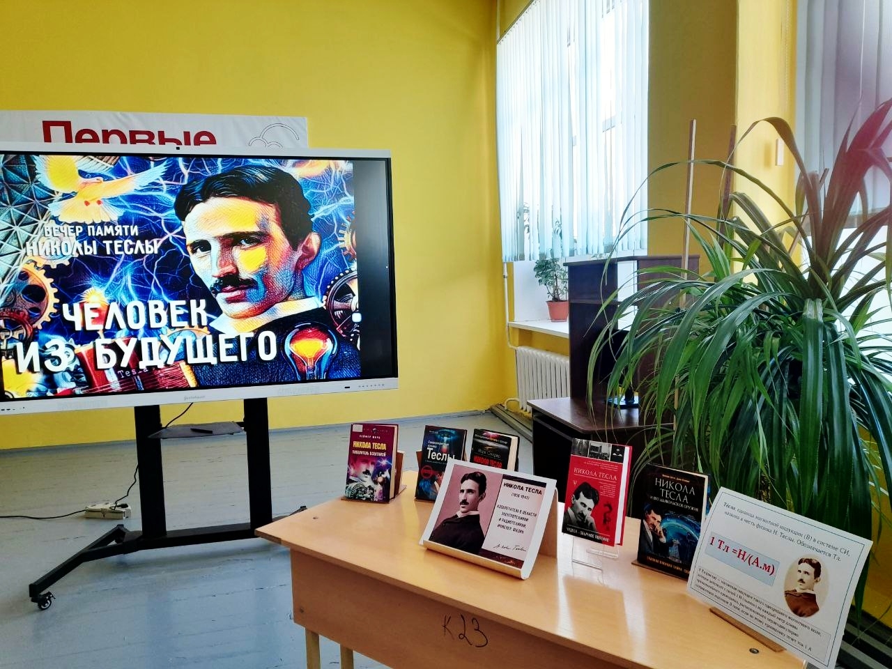 Данное мероприятие сопровождалось яркой электронной презентацией. Была оформлена книжная выставка «Никола Тесла».