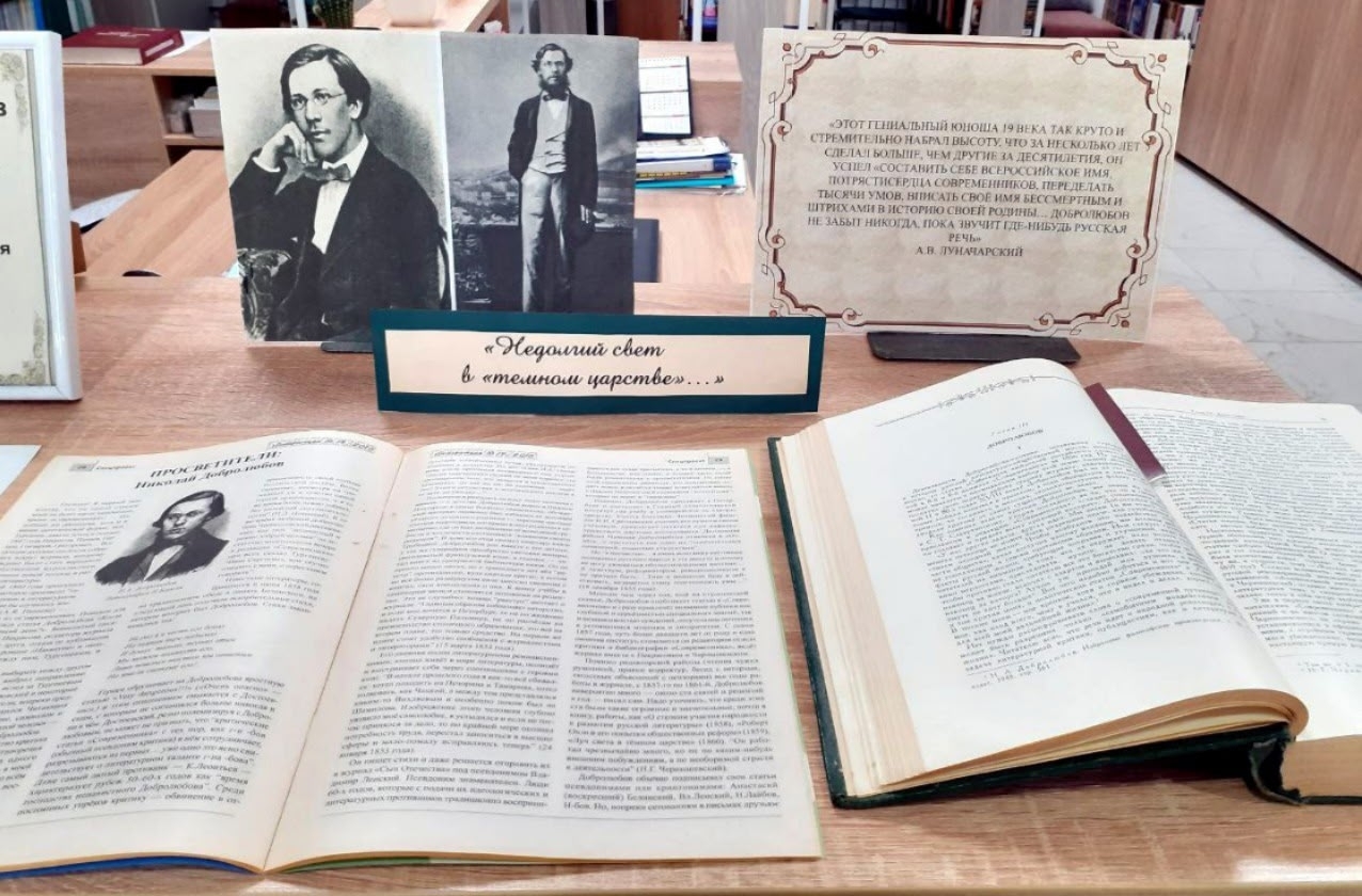 В модельной центральной библиотеке сотрудниками сектора нестационарного обслуживания подготовлена книжная выставка-обзор к 190-летию со дня рождения Н.А. Добролюбова, жизнь и творчество которого только доказывают это утверждение.