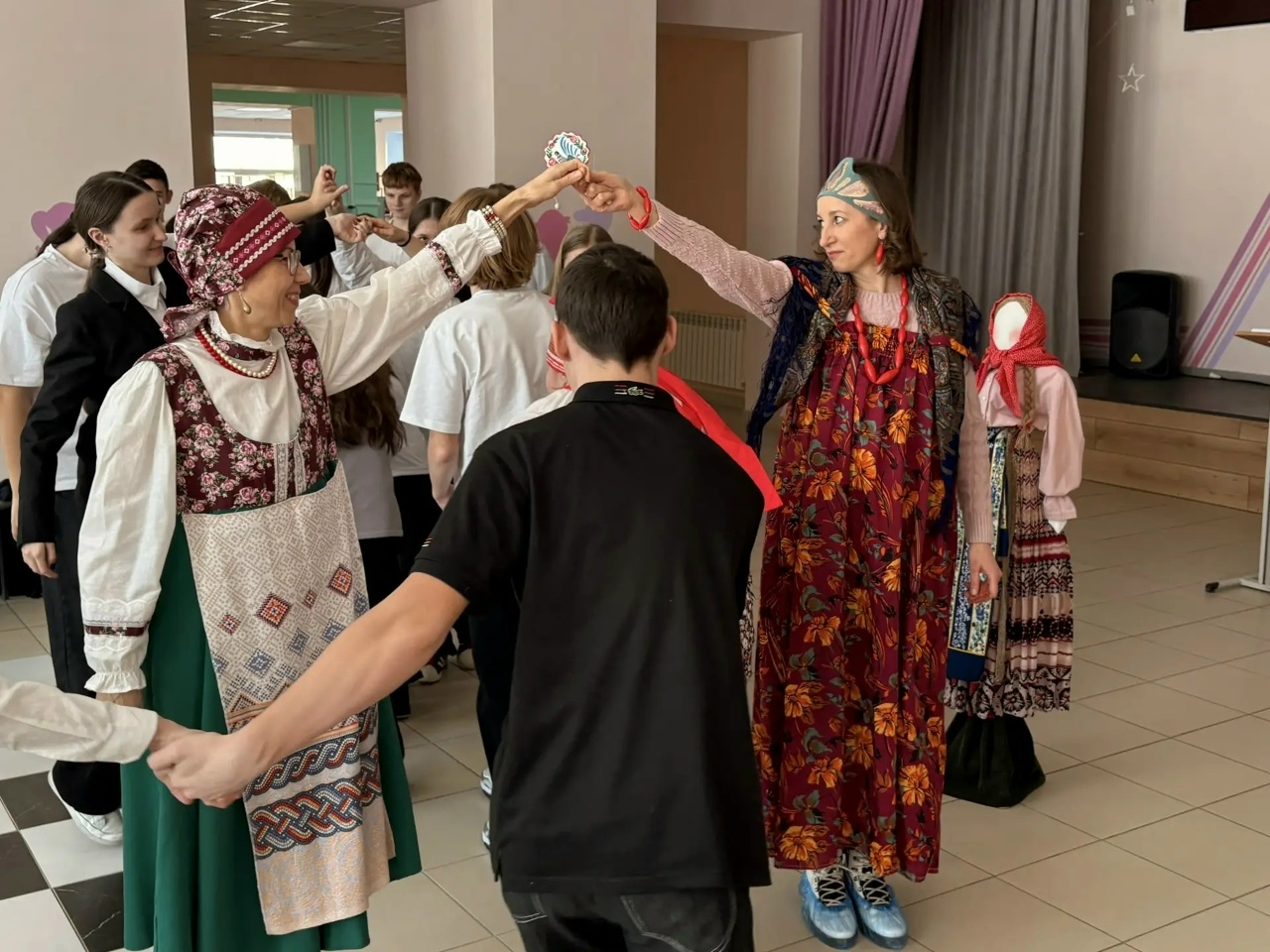 Библиотекари Центральной детской библиотеки Фирсина Екатерина Юрьевна и Михалева Ирина Васильевна и Ускату Екатерина Сергеевна провели фольклорные посиделки «Масленица хороша – широка её душа» с учащимися восьмого класса МАОУ «СОШ №7».