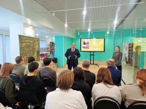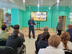 Завершилась встреча на приятной ноте: каждый участник получил памятный брелок «Защитник Отечества» и тематическую книжную закладку с цитатами русских литераторов и общественных деятелей о долге, чести и патриотизме. Также для гостей работала книжно-иллюстративная выставка «С русскими защитниками через века».