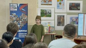 Ведущие мероприятия Ускату Е.С. и Фирсина Е.Ю. рассказали присутствующим об истории возникновения этого праздника, о великих полководцах России и о героях войны в разное время.