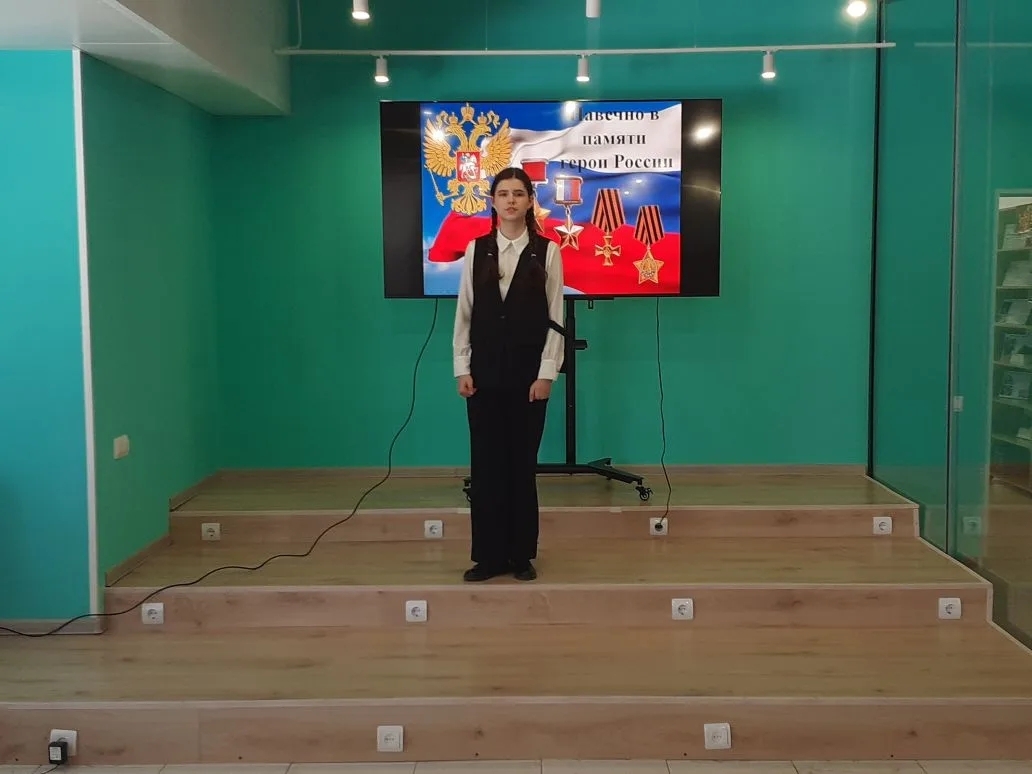 В преддверии праздника в модельной центральной библиотеке был проведен литературно-музыкальный патриотический час «Навечно в памяти герои России», который был посвящен людям, чьё мужество и отвага навсегда вписаны в историю страны. В этот раз нашими гостями были учащиеся МОУ «Гимназии имени Ю.А.Гарнаева».