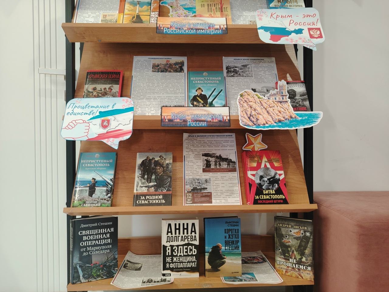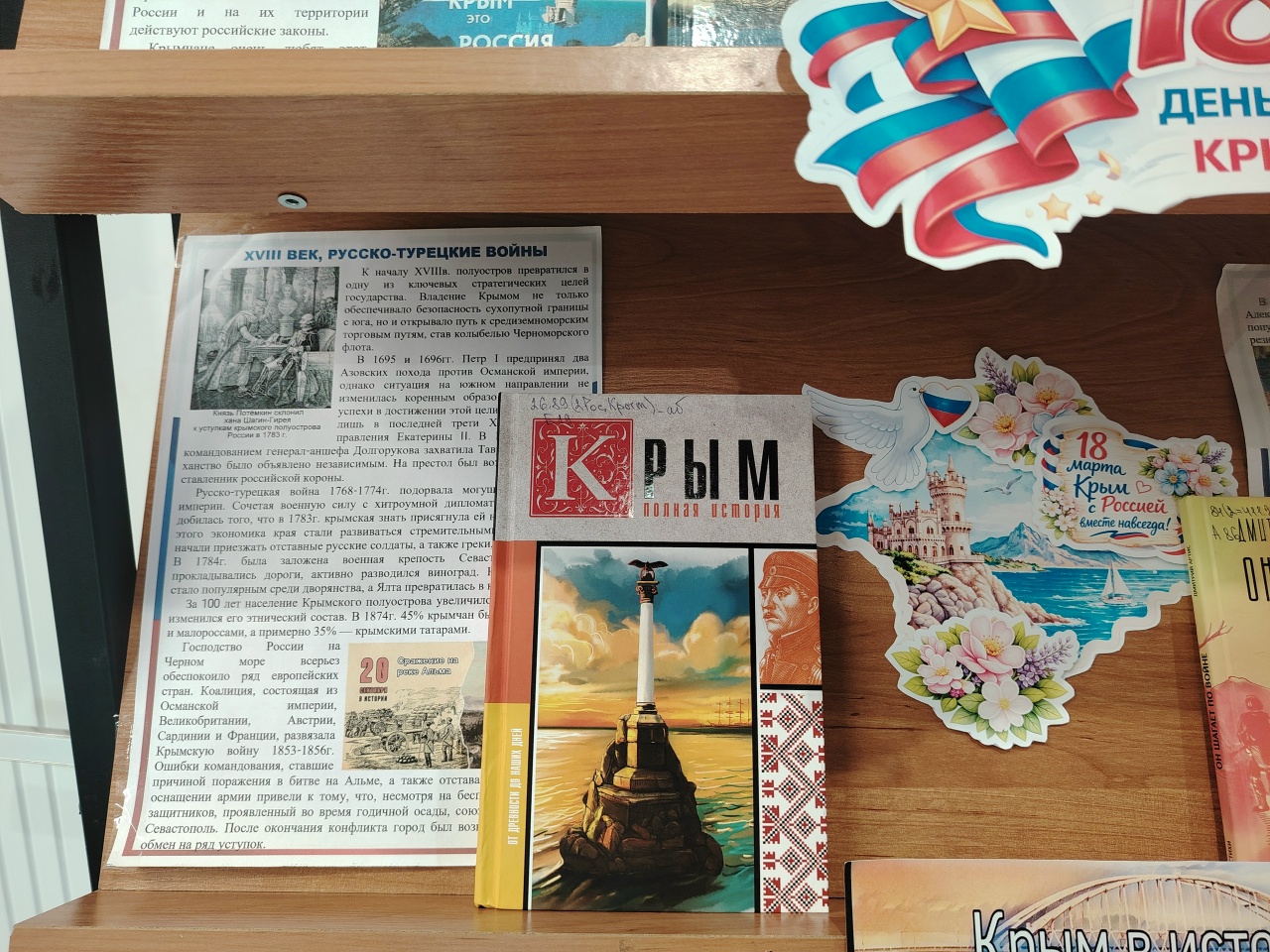 Ко дню воссоединения Крыма и Севастополя с Россией в Центральной модельной библиотеке оформлена книжно-иллюстративная выставка «Крым в сердце России». На экспозиции представлены издания, рассказывающие о многовековой истории Крыма, о его славном прошлом, о героических страницах, связанных с Россией.
