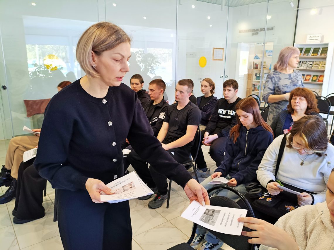 Накануне Единого дня профилактики противоправного поведения несовершеннолетних ведущий библиотекарь центра правовой информации Елена Александрова провела беседу со студентами Профессионального лицея.