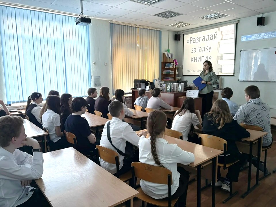 19 марта для учеников 8 «Г» и 8 «Д» классов МАОУ СОШ № 7 г.Балашова заведующая филиалом №5 Еремеева А. С. провела литературно-познавательную викторину «Разгадай загадку книги».