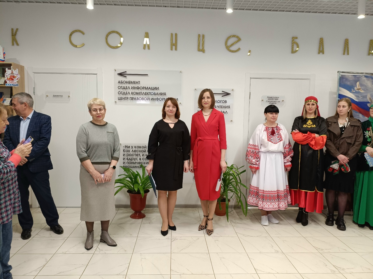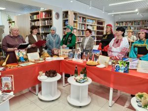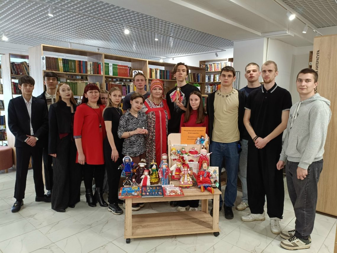 Следующей остановкой стал абонемент. Здесь посетителей ждала настоящая сокровищница — уникальная коллекция кукол «Национальный костюм – душа народа». Каждая кукла, созданная с душой руководителем клуба «Родник» Ириной Михалёвой, рассказывала свою историю. Дополняли экспозицию рассказы сотрудников об удивительном литературном наследии, объединяющем народы России.